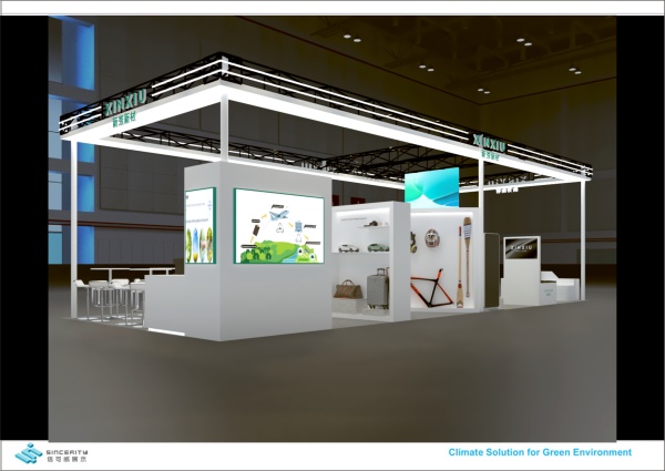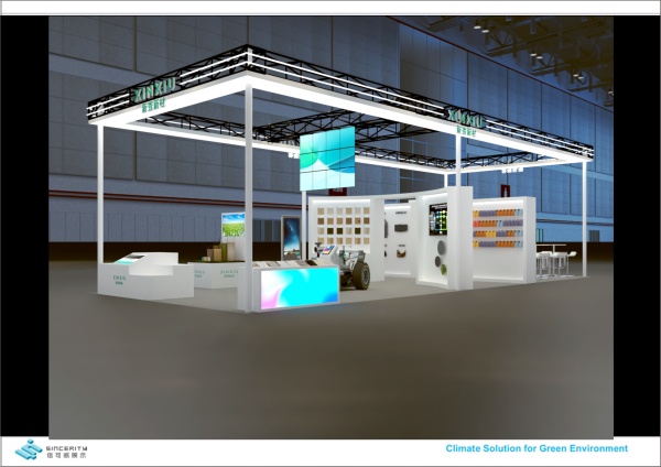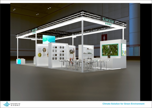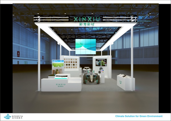 深圳信可威作為新秀新材展會(huì)主承包商,信可威設(shè)計(jì)團(tuán)隊(duì)借助企業(yè)的產(chǎn)品性質(zhì)與行業(yè)特色以格調(diào)白為主色,以新秀綠、高級(jí)灰為輔色點(diǎn)綴,部分融入竹藤等生態(tài)木紋打造生態(tài)與科技相融合的新材料產(chǎn)品展示空間,營造出具有國際化、生態(tài)與科技感、復(fù)古&未來感并存的空間氛圍。