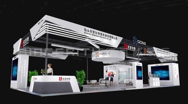 本次展位設計以灰白為主色調,專為東寶生物企業打造。設計旨在展示品牌形象、產品以及企業理念,通過合理的布局和細節處理,使整個展位既簡潔大方又富有層次感。設計理念注重品牌形象的突出,營造一個高端、簡約的展覽環境,讓參觀者對品牌有更深刻的認識和了解。