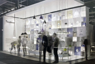 本項目是傳統公司在斯德哥爾摩家具展上的展廳。相比較而言,此展廳長而窄,很明顯只能在垂直方向上做文章。眾多格子頗有韻律地堆砌在一起,顯得俏皮而嚴肅,這正符合品牌的定位。展廳前后的顏色與&傳統的商標一致,公司設計師的大理石半身像被印成圖片掛在前面。展品與多維度的貨架完美地結合在一起,給人一種比例扭曲的感覺。形態各異的吊燈自天花板垂下,一起構成一襲透明的窗簾。