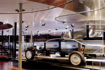 該展場(chǎng)是奔馳公司為在巴塞羅那舉行的展會(huì)而設(shè)計(jì)的,其設(shè)計(jì)理念主要源自劇場(chǎng)空間的序列,即以刷院門廳為起始,終結(jié)于劇場(chǎng)大廳。展場(chǎng)空間依循此理念,將展示空聞全部展示給參觀者,而不是用封閉的墻或門將展示空間分隔成許多零碎的小空間。而開放的展示空間在全部呈現(xiàn)給觀眾的同時(shí),也顯示出各個(gè)空間的個(gè)性來(lái)。