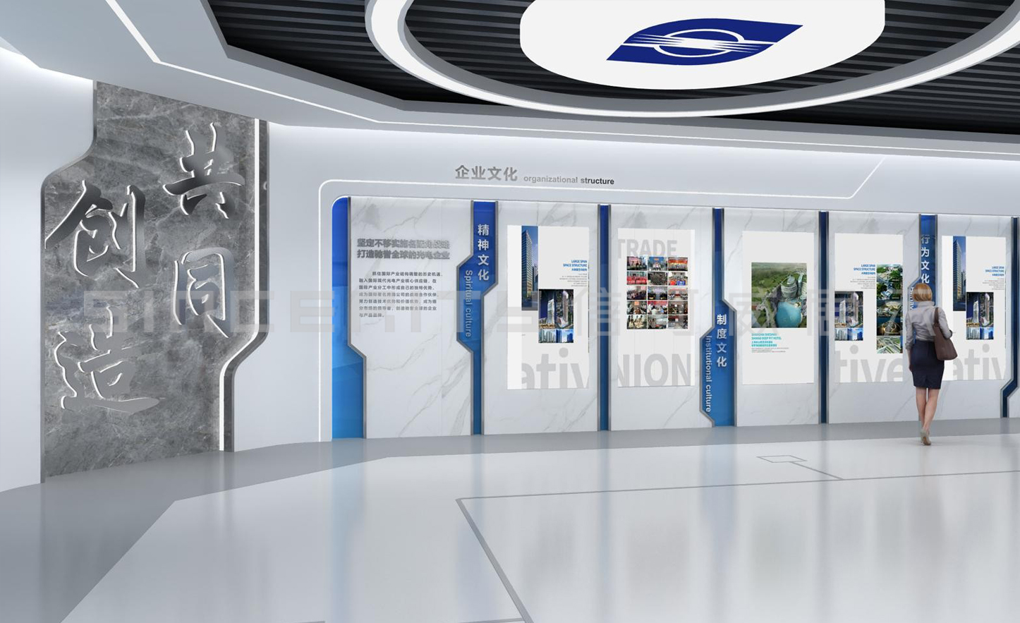企業文化墻展廳的設計是一個綜合性的項目,旨在通過視覺、互動和體驗等多種方式,全面展示企業的科技創新精神、企業文化、發展歷程及未來愿景。以下是企業文化墻展廳設計的一些關鍵要點: