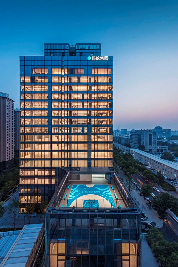 螞蟻集團位于北京的「螞蟻T空間」,落位于一個智慧未來的塔樓,空間的設計旨在提供一個辦公生態友好的工作環境,促進創新思維之間的深度融合。